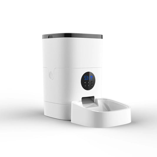 06-Smart Durable Finger Pressure Automatic Pet Feeder Dog Cat Food Dispenser Station Bowl Timer Dish Feed White Box Plastic 4L/6L