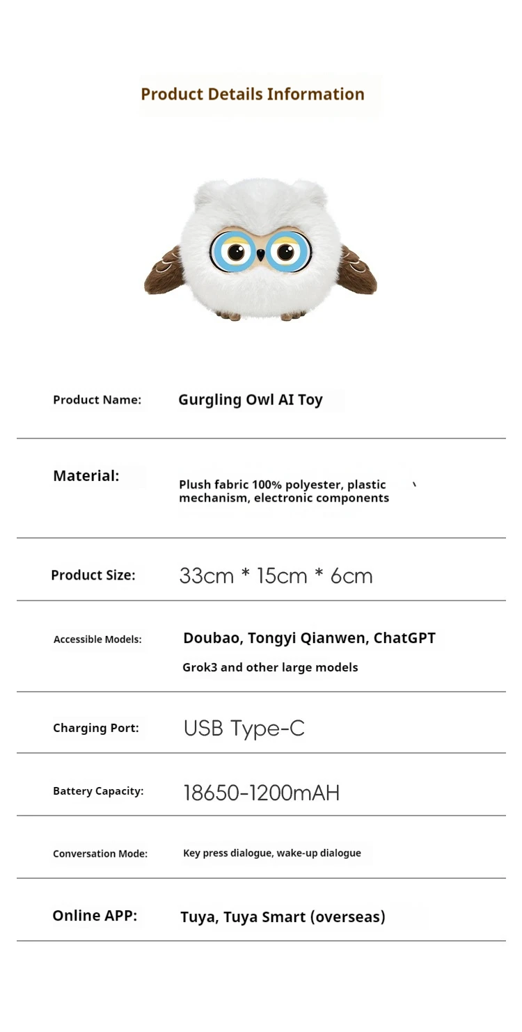 Ai Robot Intelligent Interactive Plush Owl Doll Quick Response Toys For Children Early Education Companion Toy